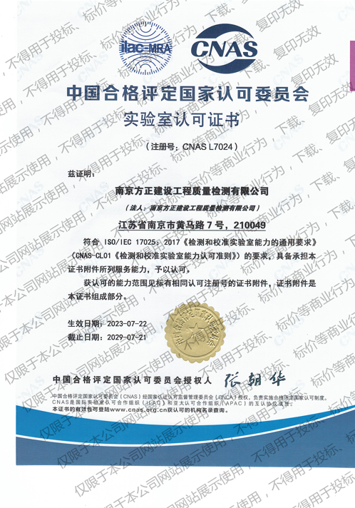 南京方正建設工程質量檢測有限公司是1989年省建設廳批準成立的具有獨立法人資格的專業工程質量鑒定及檢測機構,具有中國合格評定國家認可委員會實驗室認可CNAS資質、省建設廳核準的見證取樣類檢測、專項類檢測及備案類檢測資質,省質量技術監督局資質認定CMA資質,省地理測繪信息局測繪資質,被省建設廳評為2010年度、2011年度、2012年度A級信用等級單位,是入選《全省中小學校舍安全工程抗震鑒定機構名錄》的鑒定機構, 是入選江蘇省人民法院委托鑒定機構電子信息平臺的鑒定機構...